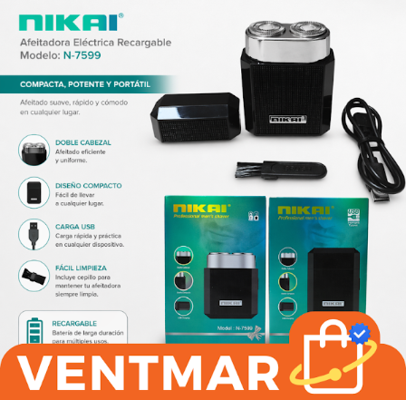 La afeitadora eléctrica Nikai N‑7599 recargable ofrece un afeitado práctico, rápido y cómodo gracias a su doble cabezal flotante y diseño compacto portátil. Ideal para uso diario en casa o para llevar de viaje.